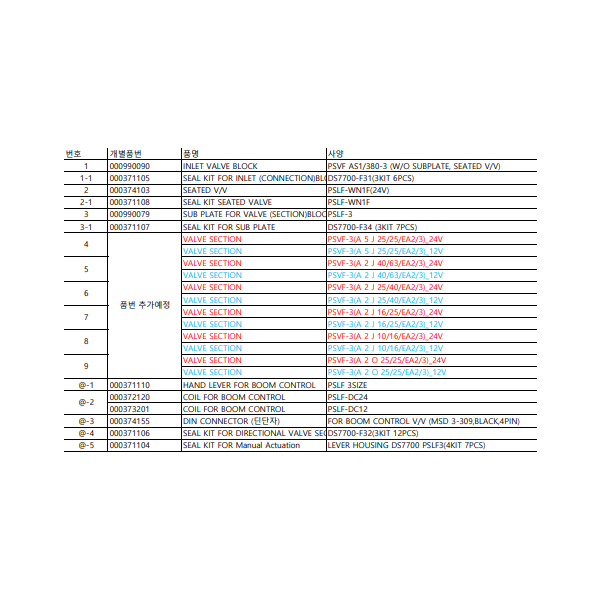붐 컨트롤 벨브(PSLF,PSVF) 부품
